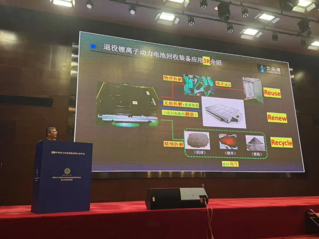 在2024中國動力電池回收利用行業(yè)年會上,艾樂博的董事長農(nóng)百樂先生發(fā)表以《智能拆解與精細回收》為主題的演講,向行業(yè)展示了艾樂博的技術(shù)實力和創(chuàng)新成果。