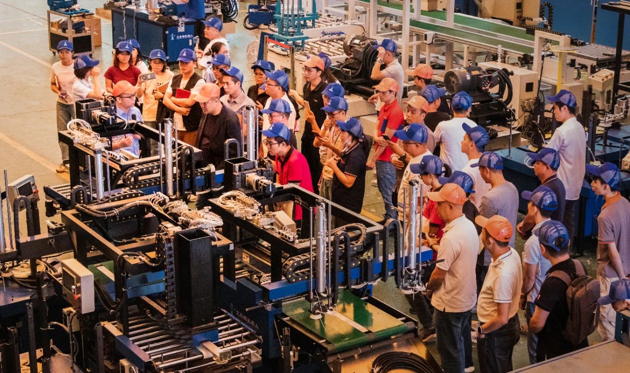作為主辦方的艾樂博機(jī)器人總經(jīng)理農(nóng)百樂先生,對各位嘉賓的到來表示了熱烈的歡迎。他帶領(lǐng)著將士們走進(jìn)工廠生產(chǎn)線,讓大家親身體驗(yàn)艾樂博在智能數(shù)字化運(yùn)營方面的成就。生產(chǎn)線上,機(jī)器的轟鳴聲與人們的討論聲交織在一起,大家認(rèn)真傾聽,積極交流,對數(shù)字化裝備的成效贊不絕口。